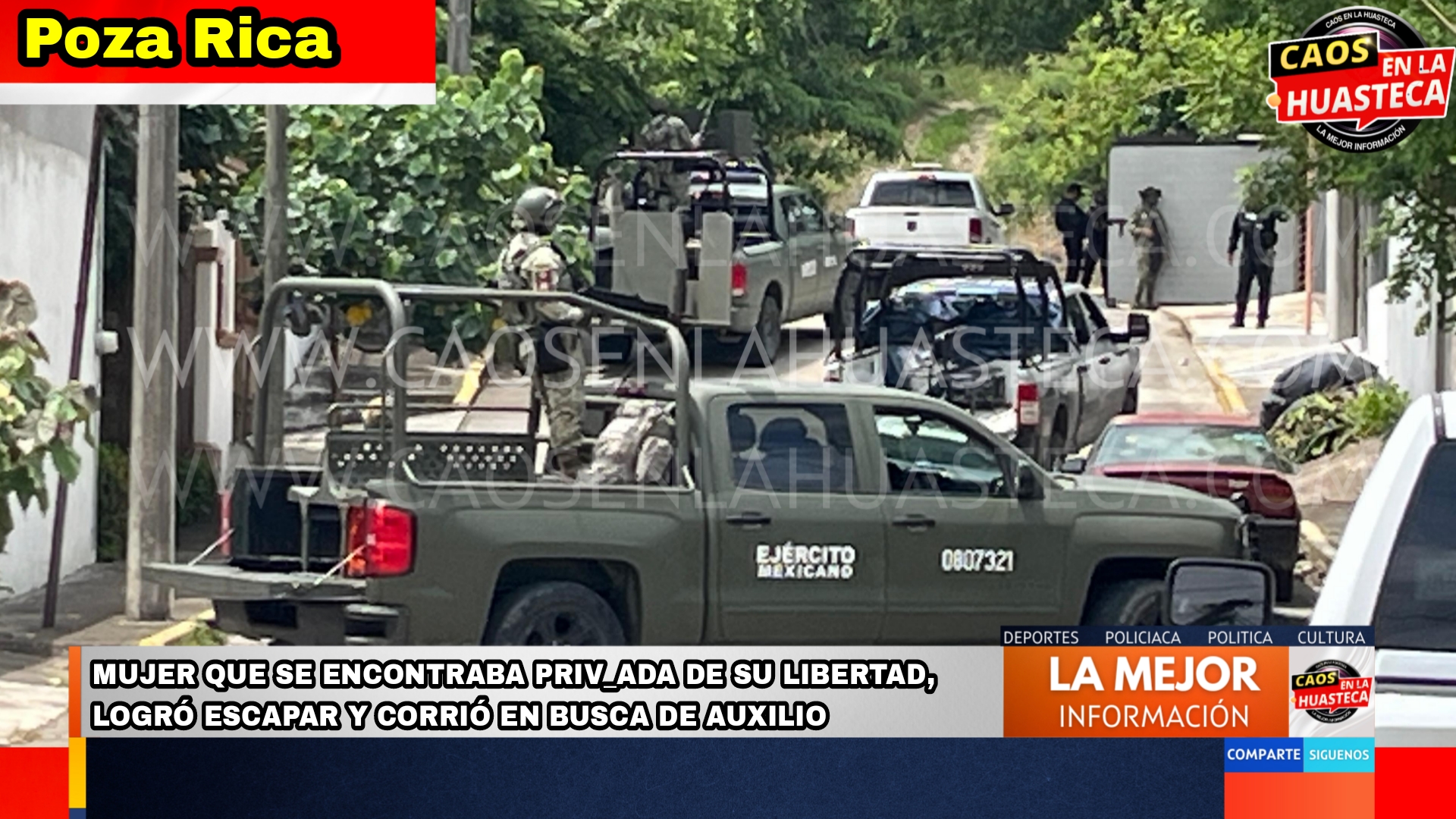 Poza Rica, Veracruz.- Esta mañana gran movilización policíaca se registró en la calle Lerdo de Tejada de la colonia Revolución en Poza Rica, luego de que se reportara una mujer atada de las manos corriendo y en busca de auxilio por todo el sector.