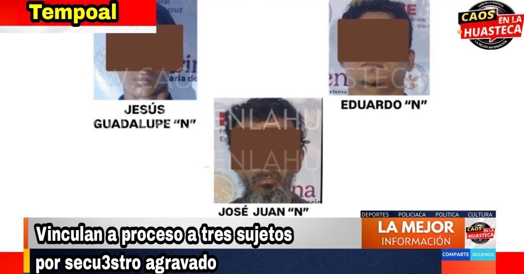 💥🚨Tempoal de Sánchez, Ver., 21/08/2025.– Jesús Guadalupe “N”, José Juan “N” y Eduardo “N” quedaron vinculados a proceso como probables responsables del delito de secuestro agravado, luego de un violento hecho que mantiene en shock a la región norte de Veracruz.