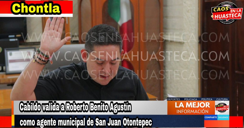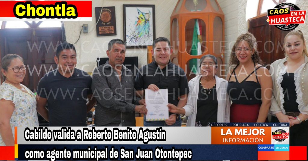 Chontla, Ver., 18 de septiembre de 2025. – En sesión extraordinaria, el cabildo del Ayuntamiento de Chontla declaró la validez del nombramiento de Roberto Benito Agustín como agente municipal de San Juan Otontepec, quien estará acompañado por su suplente Isabel Clemente Romero.