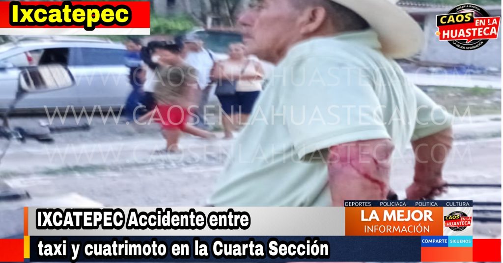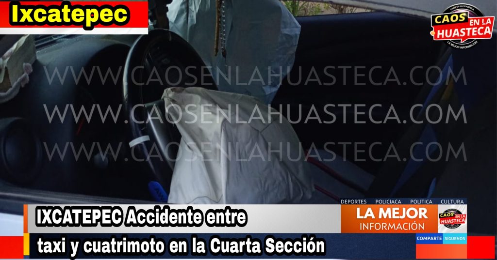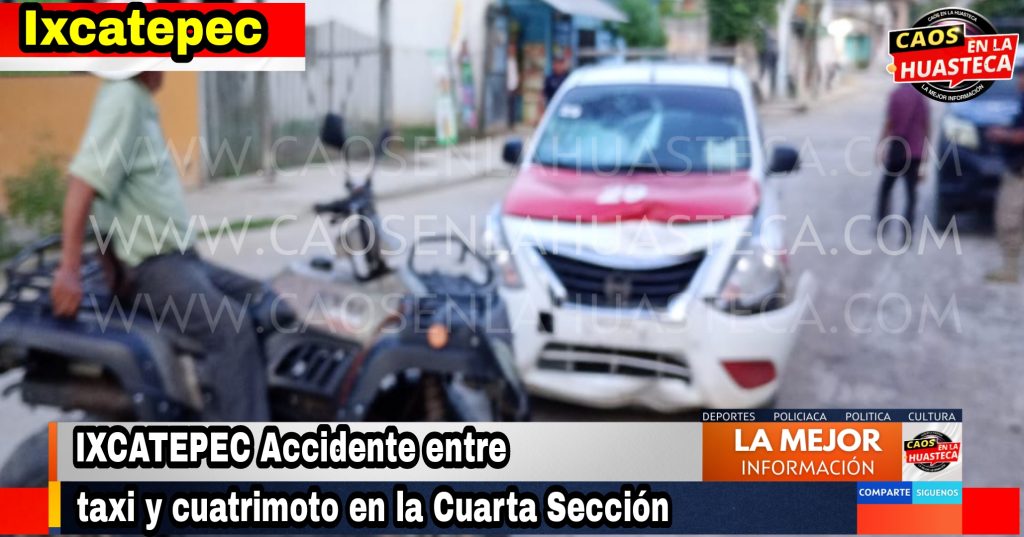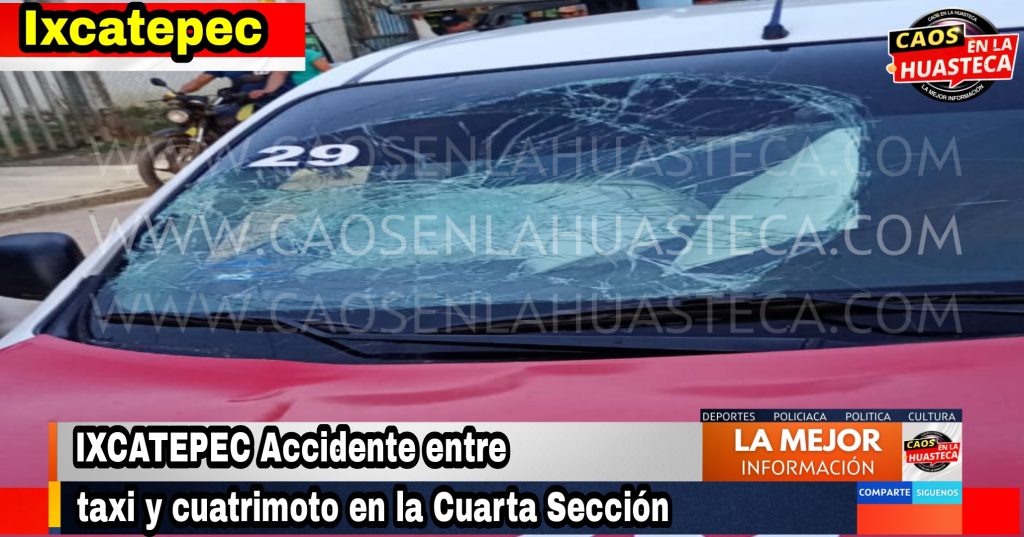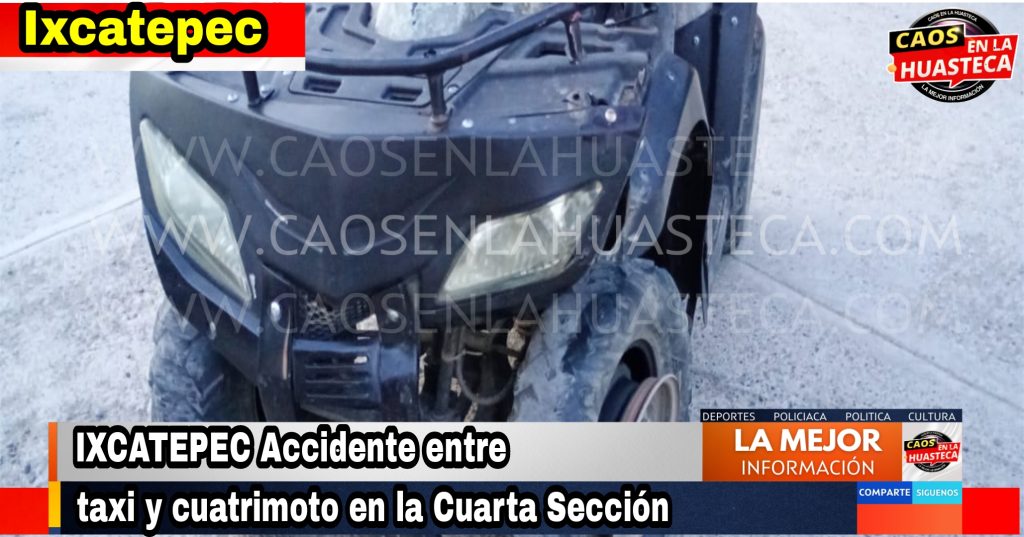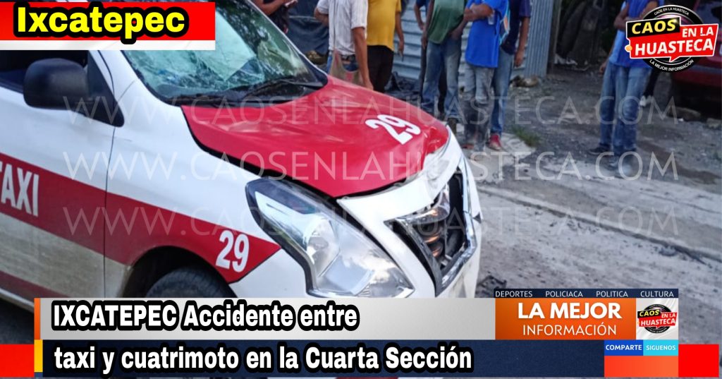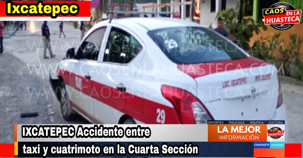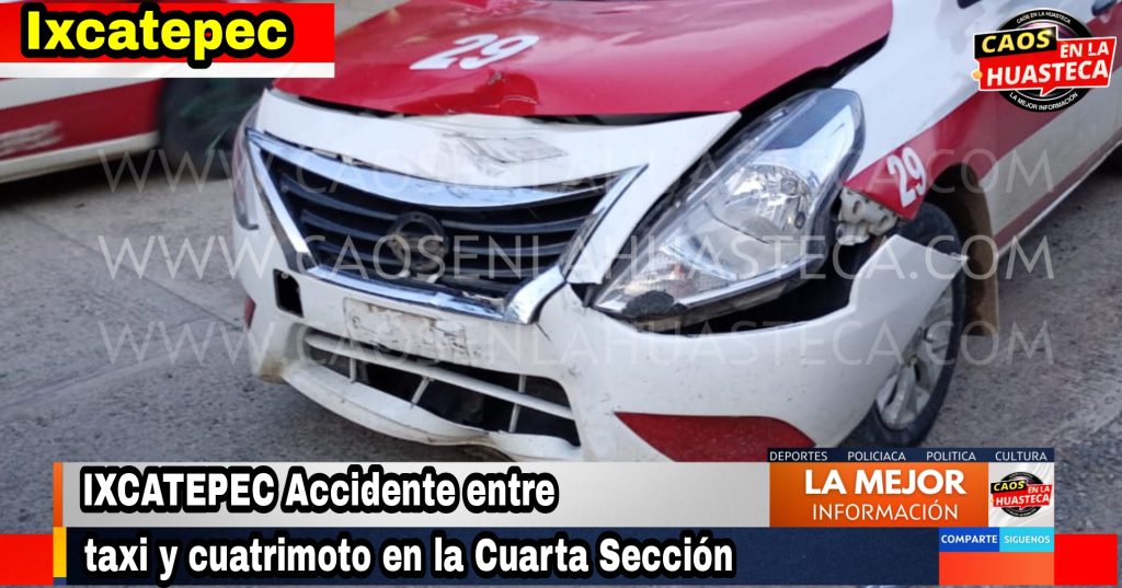 La tarde de este jueves se registró un accidente vial en la calle Higinio Melgaza, perteneciente a la Cuarta Sección de Ixcatepec, en el que se vieron involucrados un taxi y una cuatrimoto.