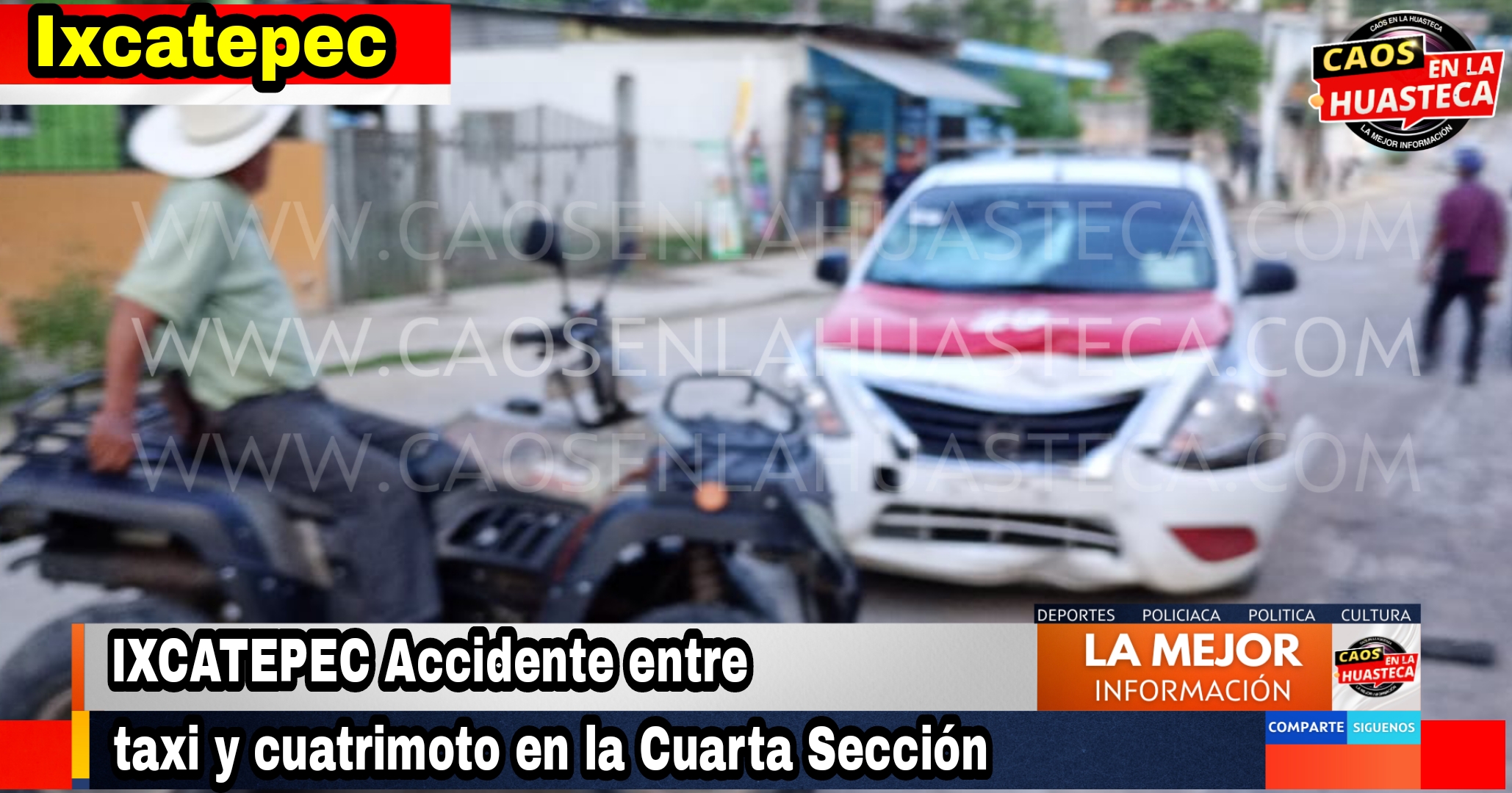 La tarde de este jueves se registró un accidente vial en la calle Higinio Melgaza, perteneciente a la Cuarta Sección de Ixcatepec, en el que se vieron involucrados un taxi y una cuatrimoto.