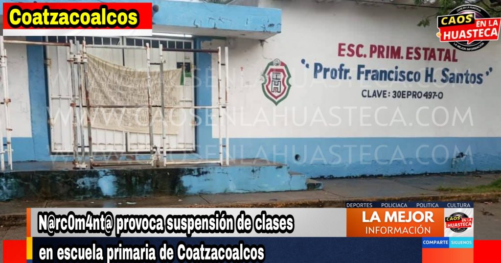Coatzacoalcos, Ver.– La mañana de este viernes 19 de septiembre, las clases fueron suspendidas en la Escuela Primaria “Profr. Francisco H. Santos”, ubicada en la colonia Puerto México, luego de que en el acceso principal del plantel fuera colocada una narcomanta.