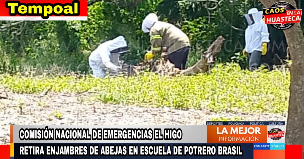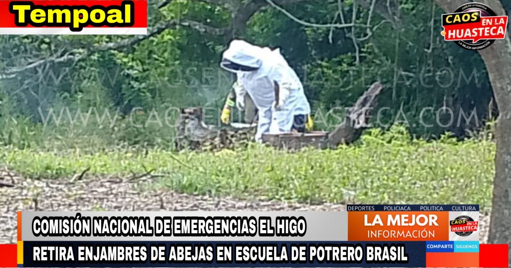 Tempoal, Ver., 19 de septiembre de 2025. – La Comisión Nacional de Emergencias de El Higo acudió a la localidad de Potrero Brasil para atender el reporte de dos enjambres de abejas que se encontraban en las instalaciones de la Escuela Primaria Francisco I. Madero.Ante la situación de riesgo para alumnos y personal docente, fueron los brigadistas de El Higo quienes se movilizaron de inmediato y realizaron la remoción controlada de los enjambres, evitando así posibles incidentes.