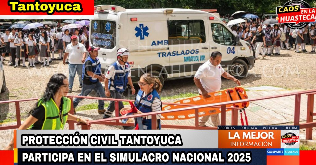 Tantoyuca, Ver., 19 de septiembre de 2025. – En el marco de la conmemoración de los sismos de 1985 y 2017, el departamento de Protección Civil de Tantoyuca acudió a diversos planteles educativos para llevar a cabo el Simulacro Nacional de Sismo 2025.