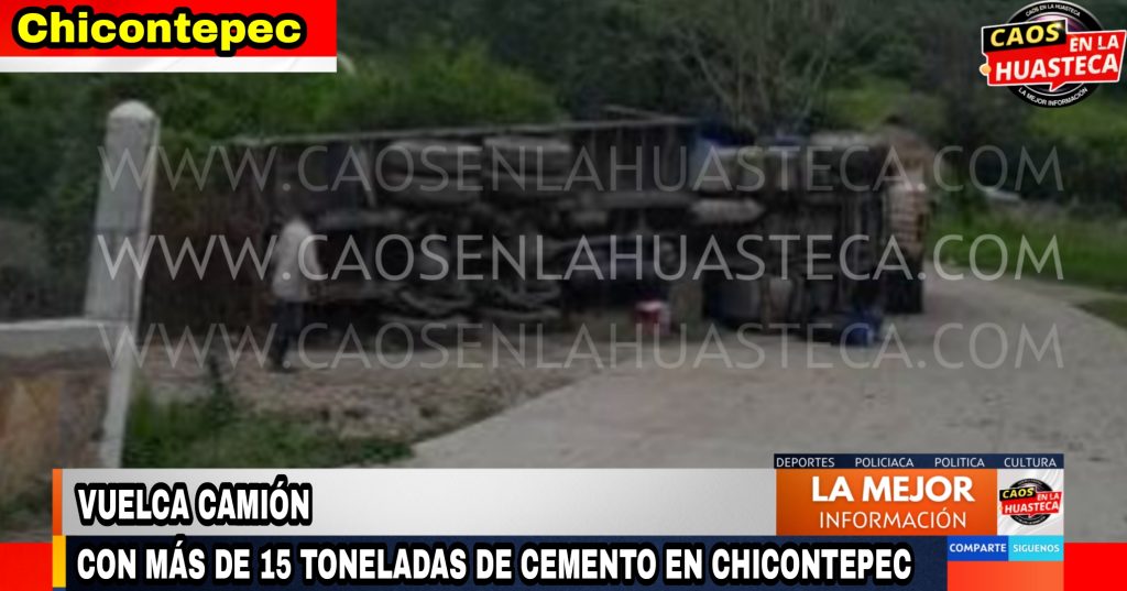 Chicontepec, Ver. – Un aparatoso accidente se registró este sábado en la comunidad de Jagüey, perteneciente al municipio de Chicontepec, donde un camión cargado con más de 15 toneladas de cemento volcó, generando alarma entre los pobladores y automovilistas que transitaban por la zona.De acuerdo con los primeros reportes, la pesada unidad habría perdido el control debido al peso de la carga y las condiciones de la carretera, quedando atravesada sobre la vía y ocasionando afectaciones a la circulación.