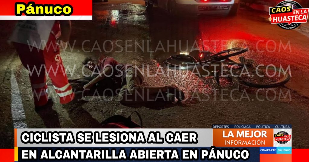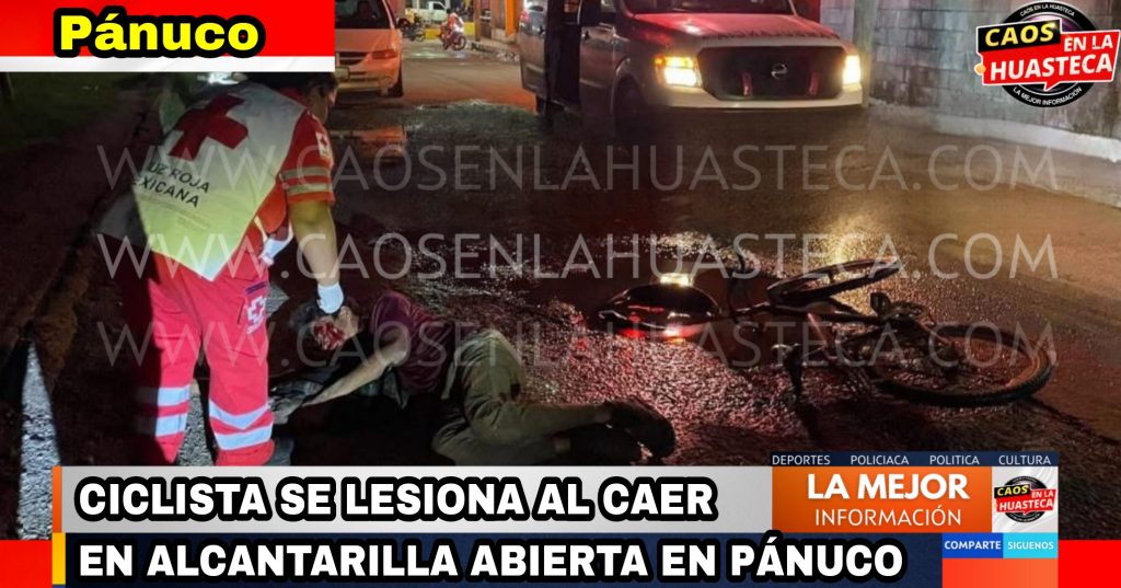 🕳️Pánuco, Ver. – La tarde de este domingo, un ciclista sufrió lesiones tras caer en una alcantarilla abierta en la calle ubicada entre Soriana y La Guadalajara.El masculino transitaba en su bicicleta cuando, debido a la falta de iluminación, cayó en un bache del drenaje, resultando con laceraciones en ceja, labios y abrasiones en rostro y brazos.Al lugar acudieron elementos del Escuadrón Nacional de Rescate y paramédicos de la Cruz Roja, quienes brindaron los primeros auxilios y trasladaron al ciclista al Hospital Civil de Pánuco para su valoración médica.