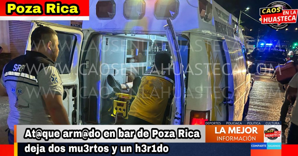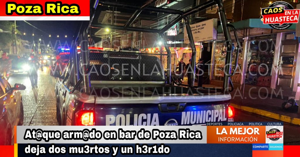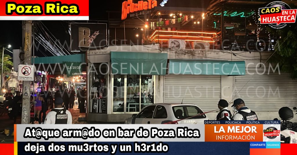 Poza Rica, Ver.- La violencia volvió a sacudir a este municipio la noche de este lunes, luego de que sujetos armados irrumpieran en el interior de un bar ubicado en la avenida 20 de Noviembre esquina con calle 20, en la colonia Cazones, y abrieran fuego contra los presentes.De acuerdo con los primeros reportes, tras la agresión se confirmó la muerte de dos personas, un hombre y una mujer, quienes al parecer laboraban en el establecimiento. En un inicio se había informado del fallecimiento de un mesero; sin embargo, horas más tarde se corroboró que eran dos las víctimas mortales.