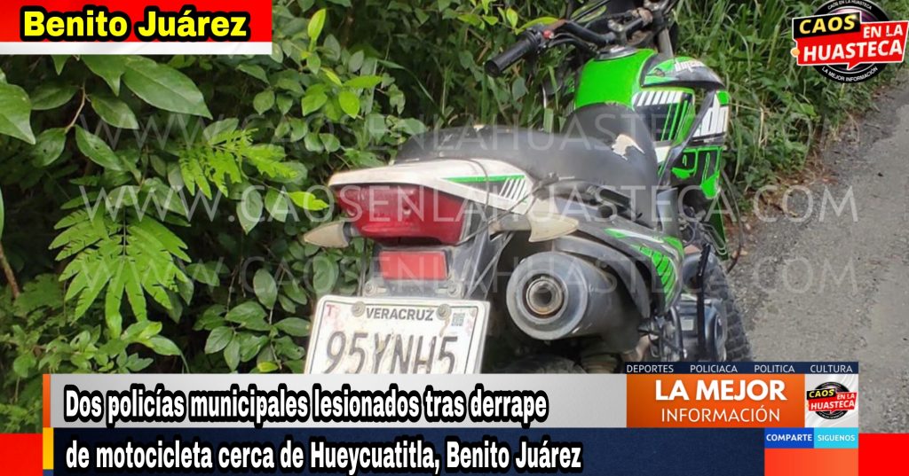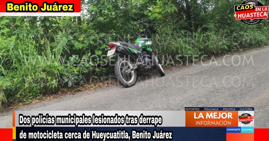 Dos policías municipales lesionados tras derrape de motocicleta cerca de Hueycuatitla, Benito Juárez