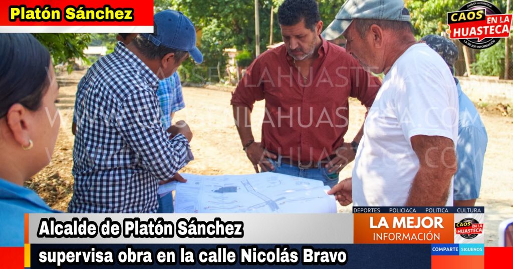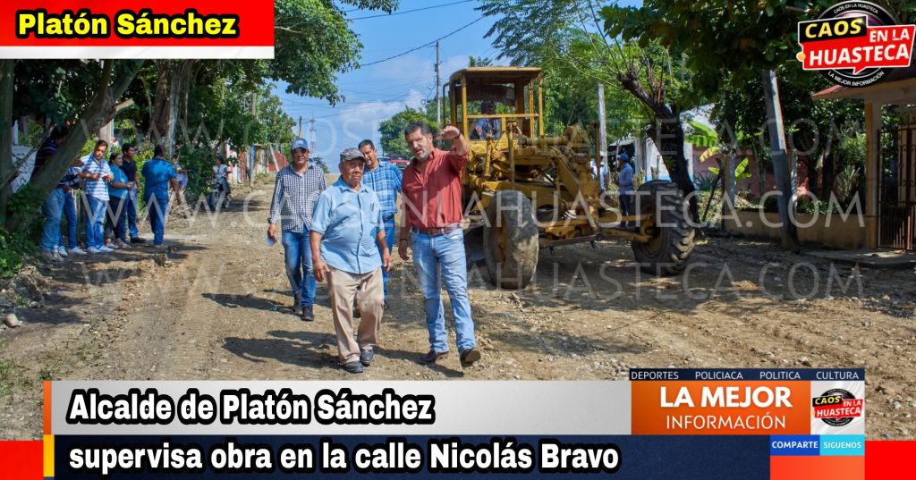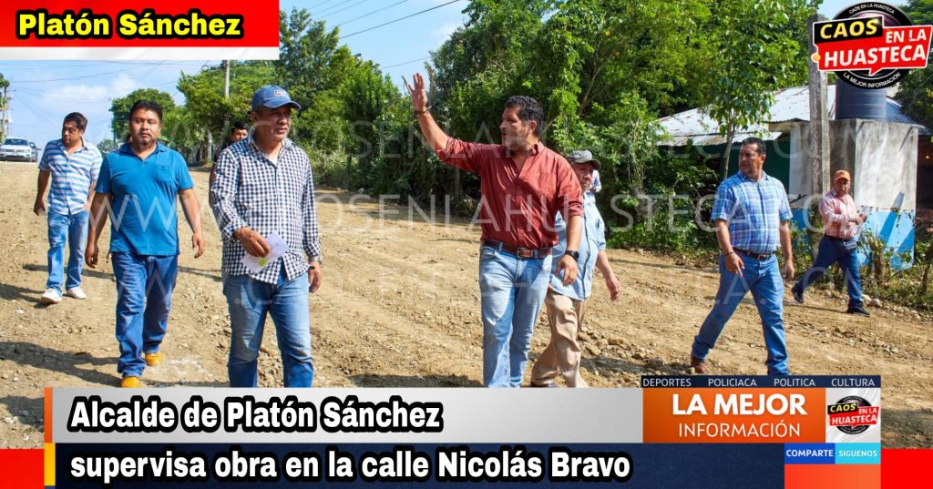 Platón Sánchez, Ver.– 🚧 El presidente municipal Guilebaldo Flores López, acompañado por el director de Obras Públicas, llevó a cabo un recorrido de supervisión en la calle Nicolás Bravo, donde se realizan trabajos de mejoramiento vial.