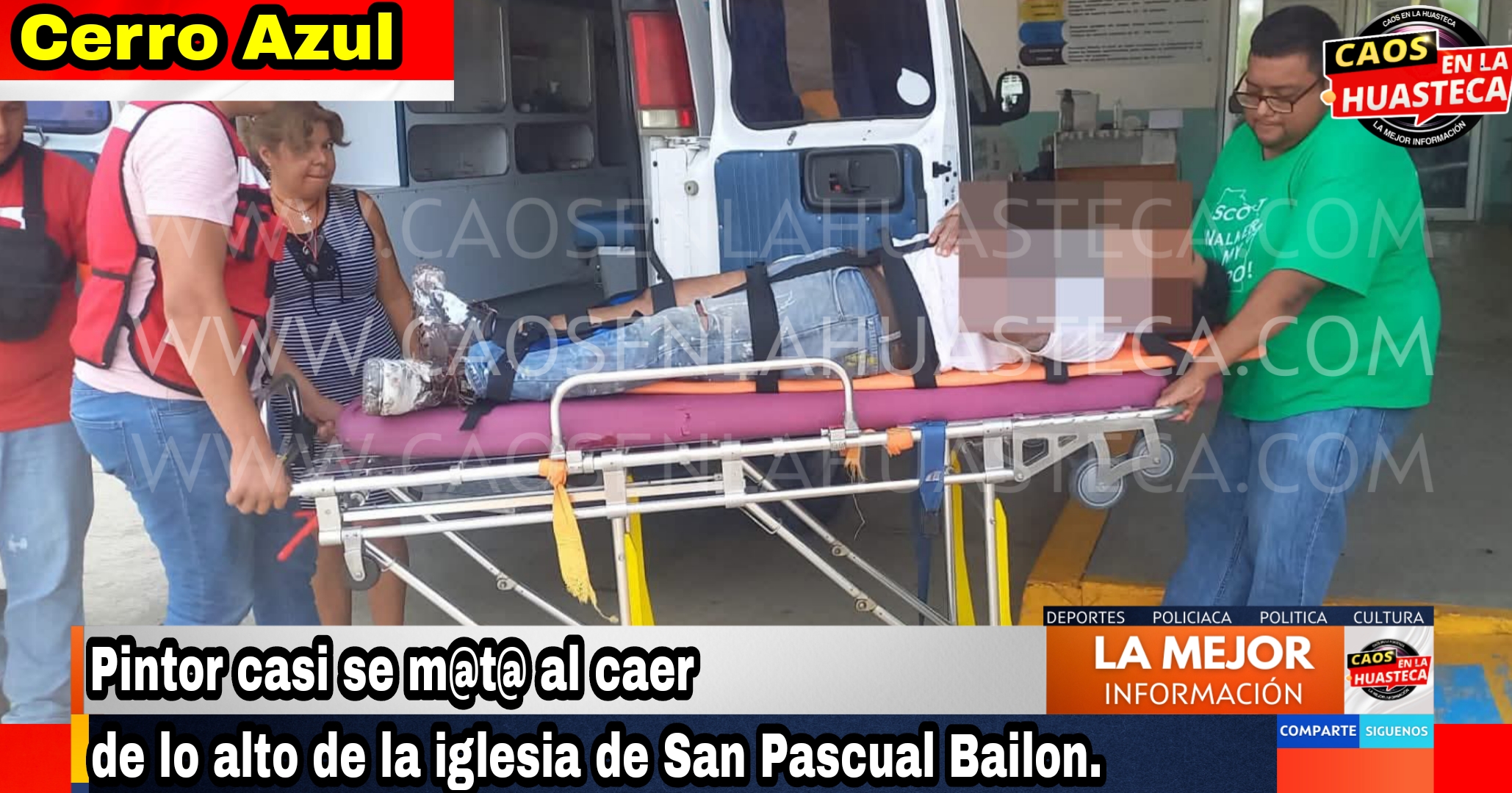 Cerro Azul, Ver.- Un masculino de oficio pintor al realizar trabajos de mantenimiento en la parte superior de la iglesia de «San Pascual Bailon» por accidente perdio el equilibrio y cayó de una altura considerable resultando lesionado en una extremidad.