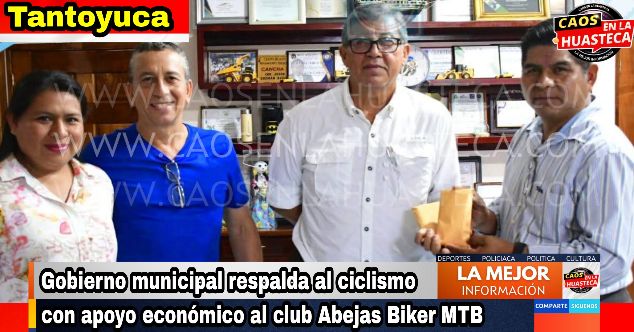 Tantoyuca, Ver.– La administración municipal que encabeza el ingeniero Jesús Guzmán Avilés refrendó su compromiso con el deporte al brindar un apoyo económico al club Abejas Biker MTB, organizador de la tercera edición de la carrera “Cerros de Miel”.