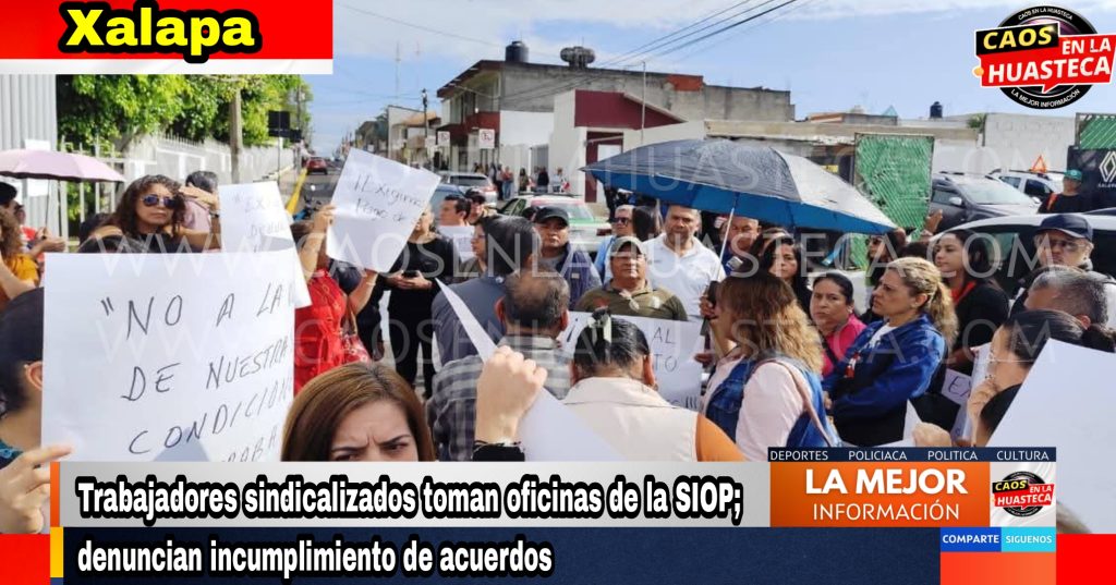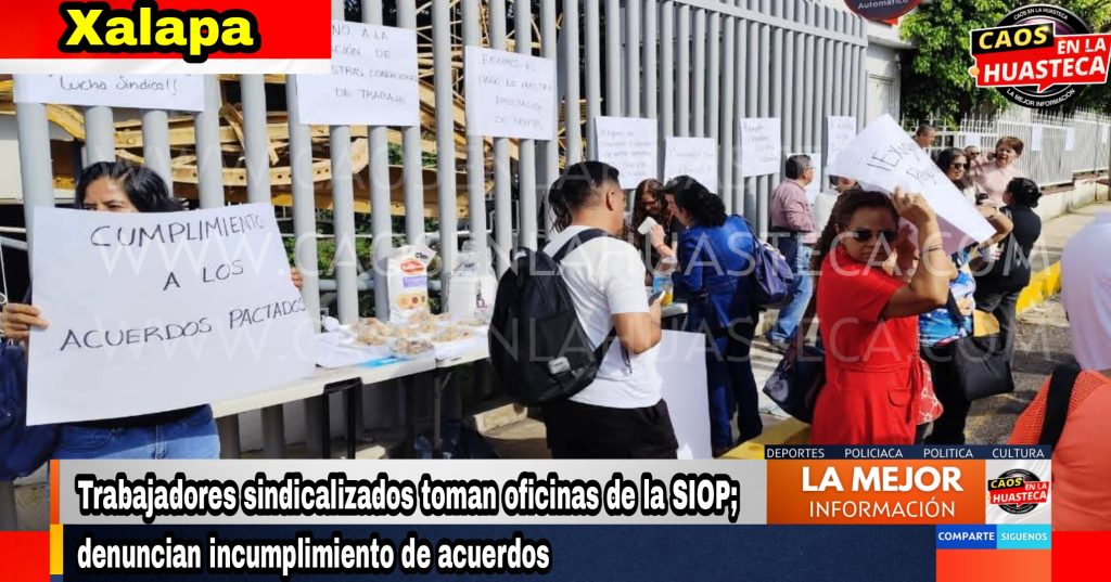 Xalapa, Ver. – Integrantes del Sindicato Liberal de Trabajadores al Servicio del Estado de Veracruz, México tomaron este miércoles las oficinas de la Secretaría de Infraestructura y Obras Públicas (SIOP) en protesta por el incumplimiento de acuerdos previamente pactados con la dependencia, lo que afecta a más de 800 agremiados.La manifestación fue encabezada por el secretario general del sindicato, Luis Manuel González García, quien denunció que desde marzo pasado se habían establecido reuniones con funcionarios de la SIOP para atender demandas laborales, pero hasta la fecha no ha habido respuesta favorable.