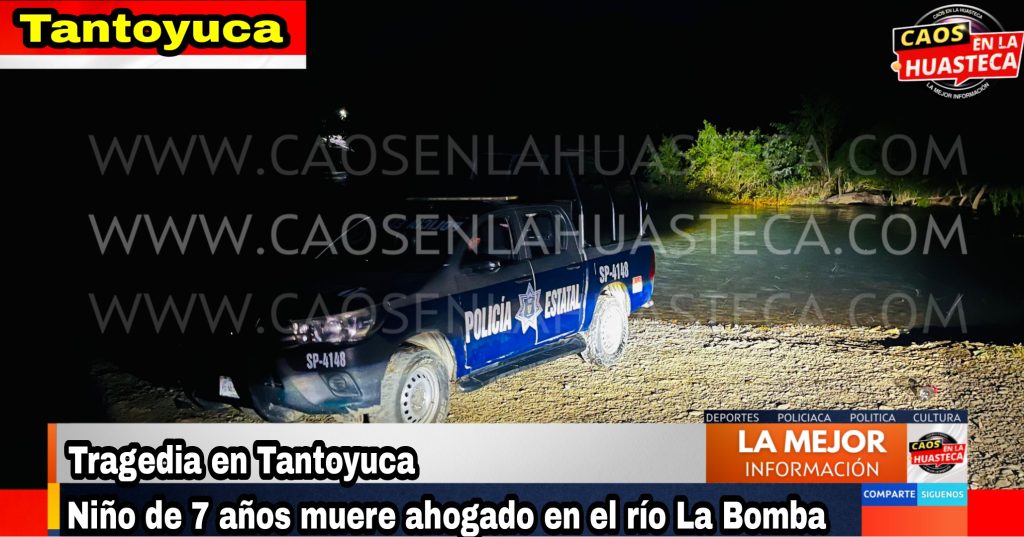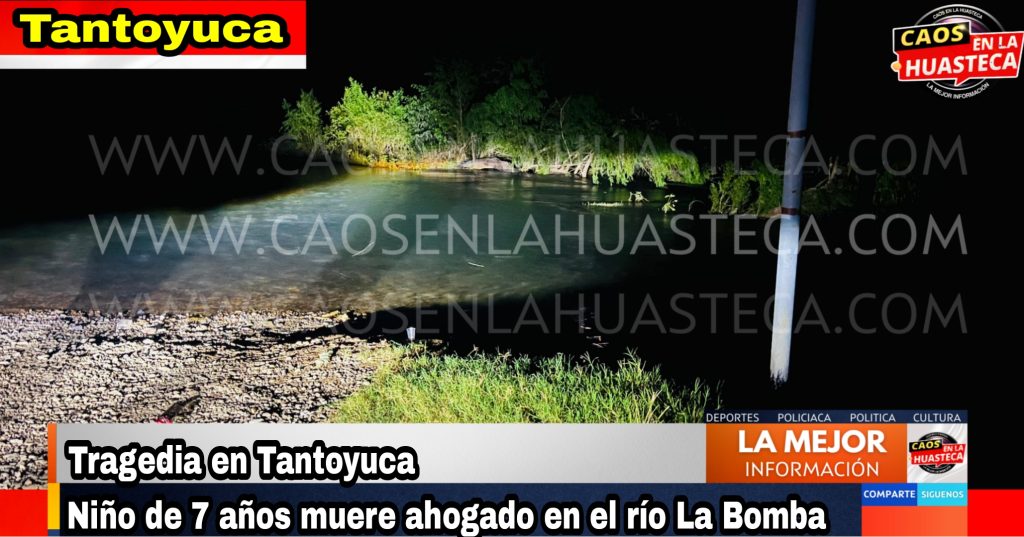 Tantoyuca, Ver. – Una lamentable tragedia se registró este viernes en la comunidad de Tepatlán, perteneciente al municipio de Tantoyuca, luego de que un menor de apenas 7 años de edad perdiera la vida por ahogamiento en las aguas del río conocido como La Bomba.