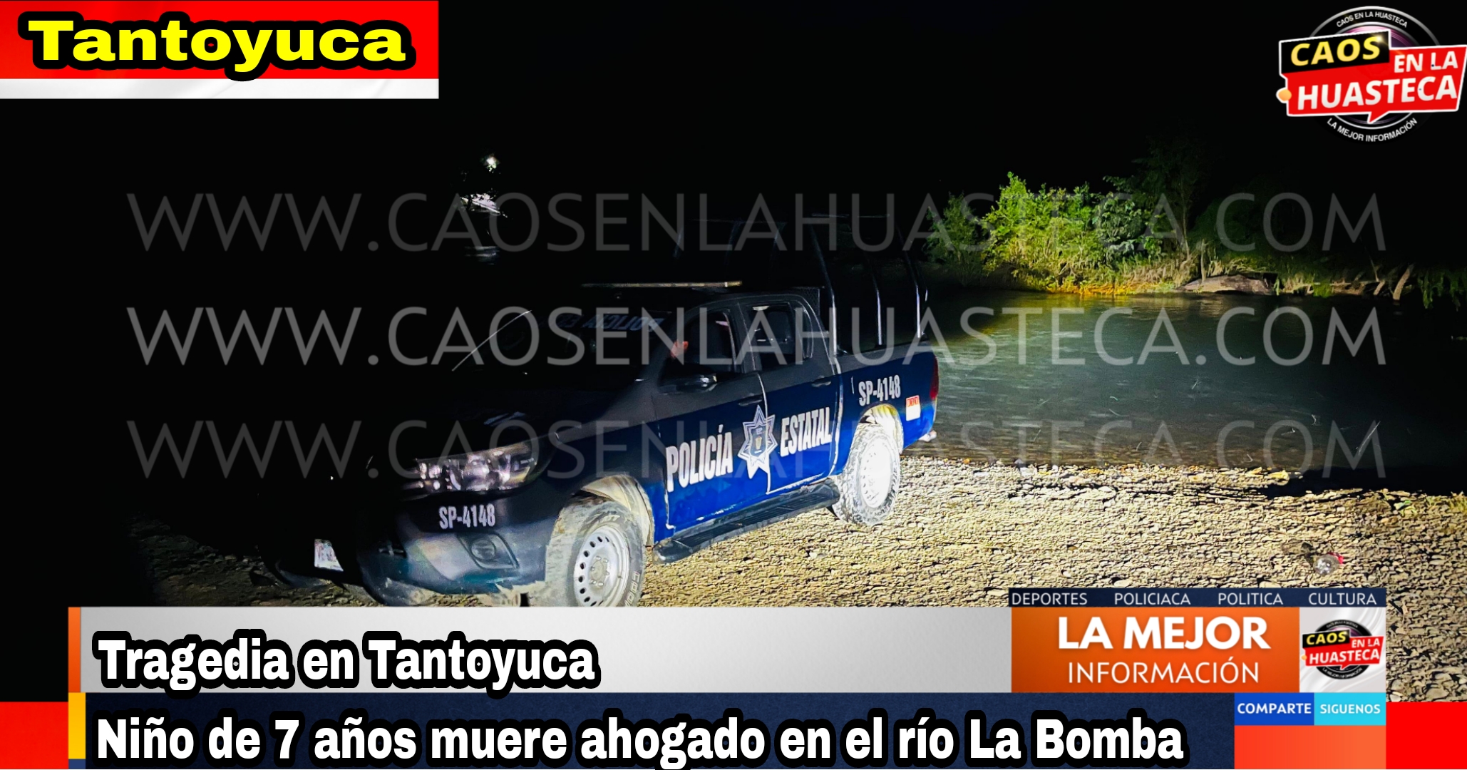 Tantoyuca, Ver. – Una lamentable tragedia se registró este viernes en la comunidad de Tepatlán, perteneciente al municipio de Tantoyuca, luego de que un menor de apenas 7 años de edad perdiera la vida por ahogamiento en las aguas del río conocido como La Bomba.
