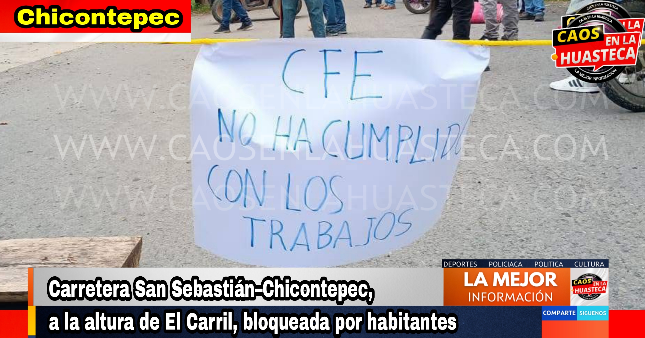 Chicontepec, Ver., 29 de septiembre de 2025. – Habitantes de la localidad Ignacio Zaragoza, en el tramo conocido como El Carril, bloquearon este lunes la carretera estatal que conecta San Sebastián con Chicontepec, en señal de protesta ante la Comisión Federal de Electricidad (CFE).