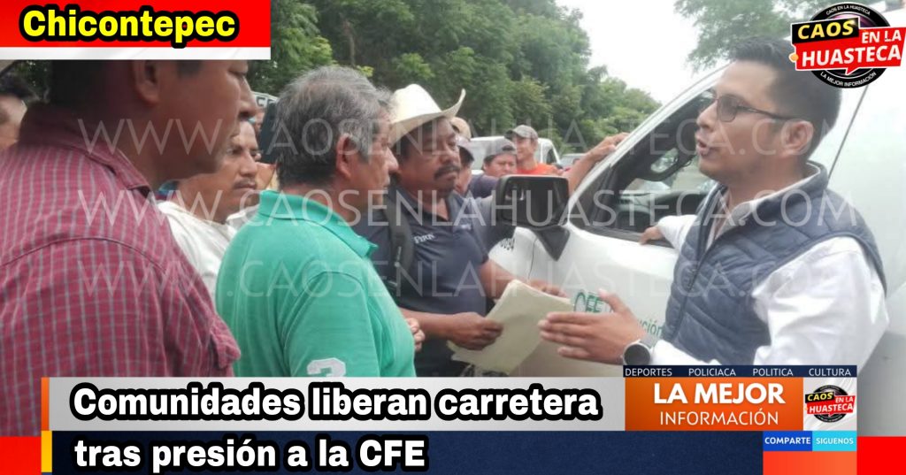 Chicontepec, Ver.- Después de más de tres horas de bloqueo, habitantes de la localidad Ignacio Zaragoza liberaron la carretera estatal San Sebastián–Chicontepec, a la altura del tramo conocido como El Carril, luego de que personal de la Comisión Federal de Electricidad (CFE) acudiera al lugar para dialogar y llegar a acuerdos con los manifestantes.Al movimiento se sumaron también vecinos de la comunidad Lindero Agua Fría, quienes denunciaron que en su zona existen varios postes de energía eléctrica en riesgo de colapsar.