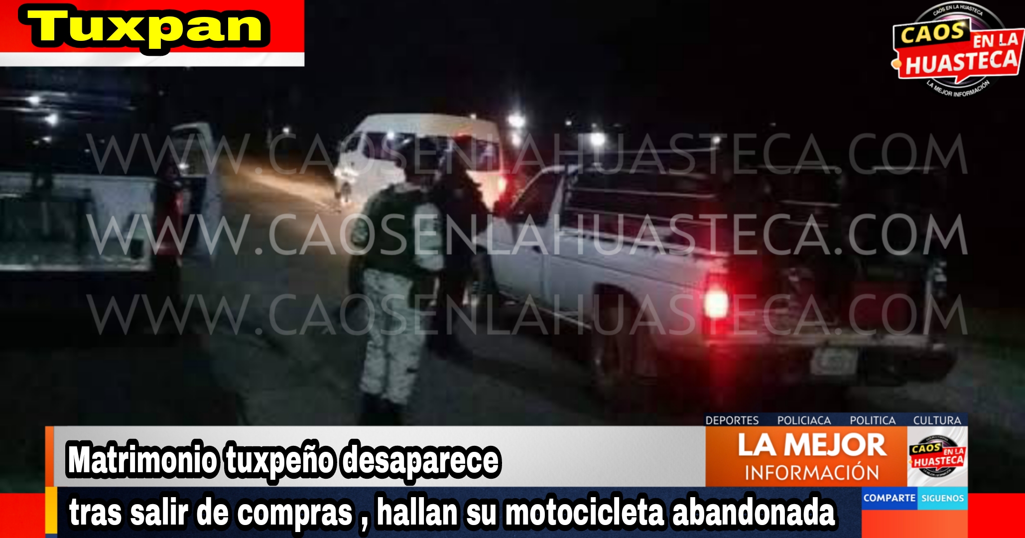 Tuxpan, Ver., 29 de septiembre de 2025. – La ola de inseguridad continúa golpeando a la zona norte de Veracruz. Un matrimonio tuxpeño fue reportado como desaparecido luego de que salieran de compras y no regresaran a su domicilio.De acuerdo con los primeros reportes, se trata del señor Álvaro Cruz Rangel y su esposa Gregoria Malerva Cordero, quienes la tarde del pasado 27 de septiembre, alrededor de las 4:30 p.m., salieron a bordo de una motocicleta RC 200 color gris con destino a la colonia Centro de este puerto.Horas más tarde, al no tener noticias de ellos, su hija comenzó a preocuparse. La última pista surgió cerca de las 7:00 p.m., cuando la motocicleta en la que viajaban fue localizada abandonada en la entrada de la comunidad Zapotal Zaragoza, a la altura de la Virgen, en Tuxpan.
