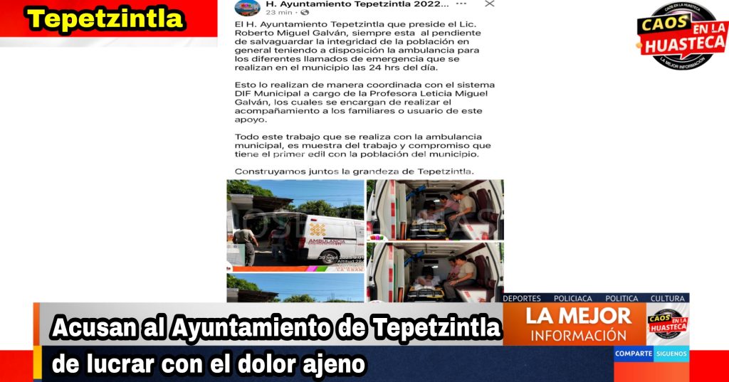 Tepetzintla, Ver., 30 de octubre de 2025. – Ciudadanos del municipio han denunciado presuntas irregularidades en el manejo de la ambulancia municipal, señalando que el gobierno local, encabezado por el Lic. Roberto Miguel Galván, estaría utilizando un servicio que debería ser público y gratuito como medio de proyección política y beneficio personal.