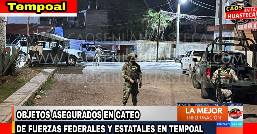 Tempoal, Ver., 1 de octubre de 2025. – Un impresionante operativo de seguridad sorprendió a los habitantes de la Zona Centro de Tempoal, luego de que fiscales, peritos y policías ministeriales de la Fiscalía Regional Tantoyuca, en coordinación con elementos de la SEDENA, SEMAR, Guardia Nacional y la Secretaría de Seguridad Pública Estatal, ejecutaran un cateo autorizado por un juez en un establecimiento del municipio.