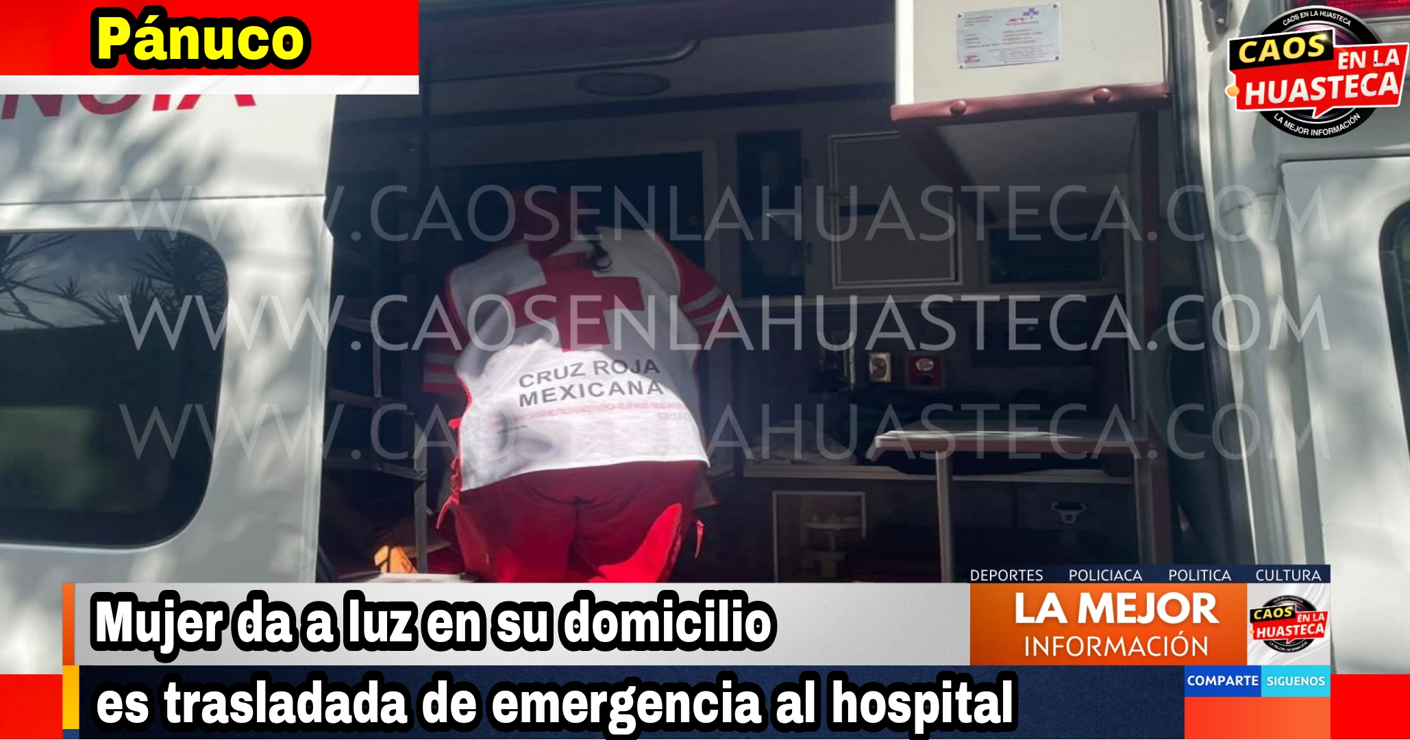 PÁNUCO, VER.- Una mujer dio a luz en su propia vivienda y posteriormente tuvo que ser trasladada de emergencia al hospital, luego de que presentara una fuerte hemorragia tras el parto.