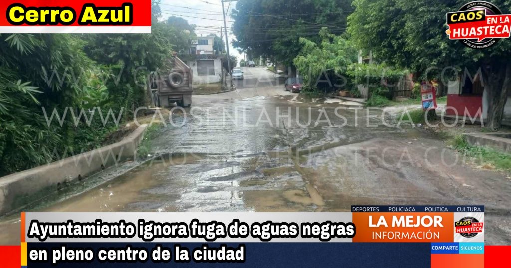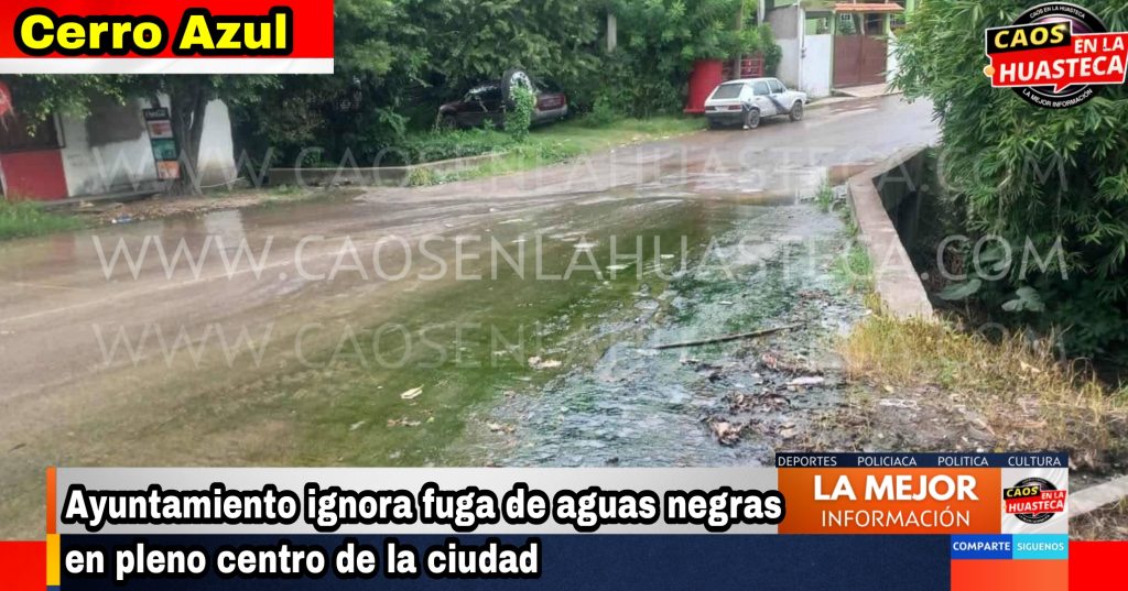 Cerro Azul, Ver. – Habitantes de la colonia La Curva denunciaron la indiferencia y negligencia del Ayuntamiento ante una fuga de aguas residuales que brota desde hace semanas en el cruce de las calles principales, a escasos metros de la Presidencia Municipal.