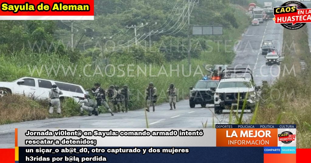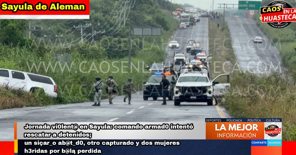 En el enfrentamiento, un presunto sicario identificado como Pedro Alberto Pérez Aguirre, originario del Puerto de Veracruz, murió en el lugar, mientras que otro integrante del grupo fue herido y detenido en los límites de Oluta y Acayucan.De manera extraoficial, se ha mencionado que entre los participantes en el ataque se encontraba un presunto líder del grupo delictivo, conocido con el alias de “El Colombiano”, quien logró escapar del operativo y es considerado uno de los principales objetivos de las corporaciones de seguridad en la región.Fuentes de seguridad informaron que el grupo armado pretendía rescatar a cuatro hombres capturados el pasado jueves, quienes fueron asegurados por elementos de la Secretaría de Seguridad Pública (SSP) en un camino entre Jáltipan y Cosoleacaque. Los detenidos viajaban en una camioneta Mitsubishi con armas largas, municiones y chalecos tácticos, y actualmente se encuentran a disposición de la autoridad ministerial.Mientras las fuerzas de seguridad concentraban el operativo en Sayula, otro grupo incendió dos camionetas en el entronque de Medias Aguas, San Isidro y Providencia, presuntamente como distractor para dispersar a las corporaciones y permitir la huida de los agresores.En paralelo, sobre la autopista Cosoleacaque–La Tinaja, a la altura de la caseta 119, dos mujeres que viajaban en un autobús de la línea ADO resultaron heridas por balas perdidas durante la persecución. Las lesionadas fueron identificadas como Irma Ruth Chaves, de 56 años, y Hilda Billar Aquino, de 65 años, originarias de Coatzacoalcos y Minatitlán, respectivamente. Ambas fueron atendidas por CAPUFE y trasladadas a un hospital regional, donde se reportan fuera de peligro.Autoridades estatales y federales mantienen desplegado un operativo especial en toda la zona sur de Veracruz, donde se ha intensificado la presencia de grupos dedicados al robo de hidrocarburo y otras actividades delictivas, especialmente en los municipios de Sayula, Texistepec y Acayucan.
