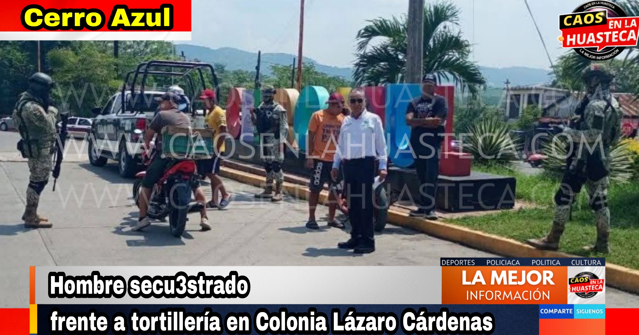 Cerro Azul, Ver. – La tarde de este martes se reportó la privación de la libertad de un hombre de aproximadamente 30 años en la colonia Lázaro Cárdenas, sobre la calle Rafael Nieto, frente a una tortillería.