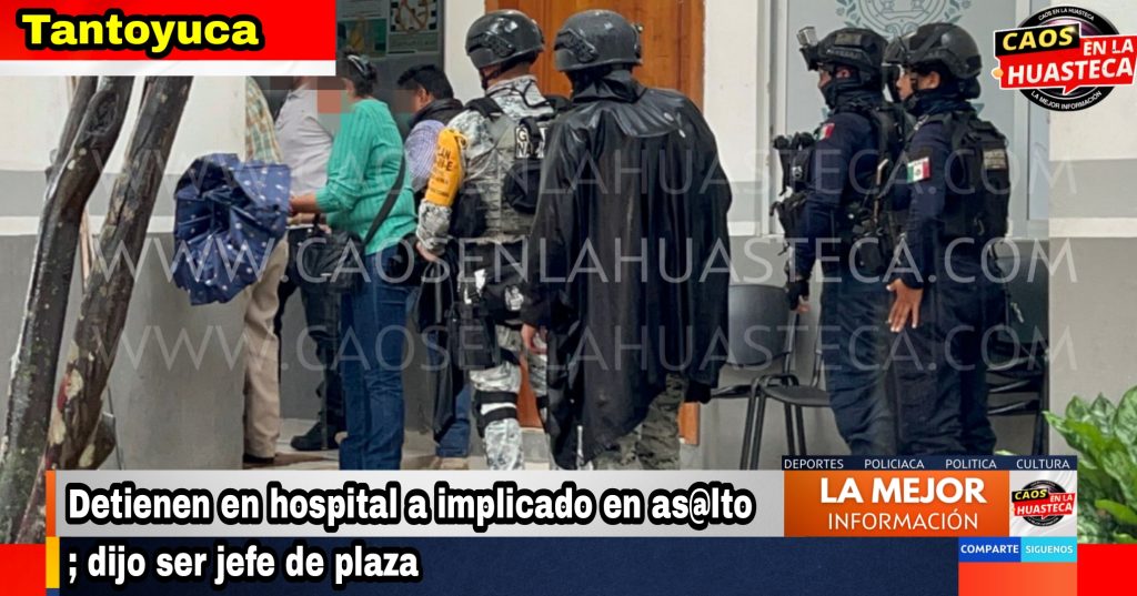 Tantoyuca, Ver. – En un fuerte operativo conjunto encabezado por la Policía Ministerial, la Guardia Nacional y la Policía Estatal, fue detenido al interior del Hospital General Humberto Silva Castillo un sujeto identificado como Luis “N”, originario de Tantoyuca, señalado como uno de los responsables del asalto a la tortillería “El Campesino”, ocurrido el pasado fin de semana en esta ciudad.