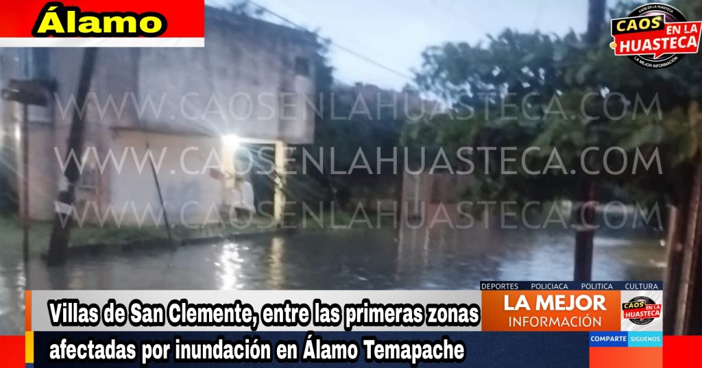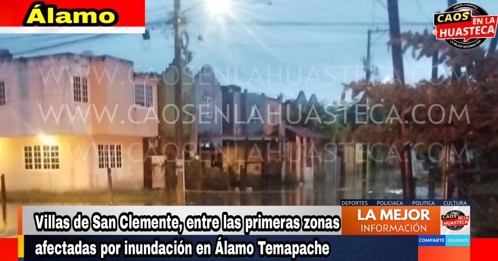 Álamo, Ver.– Las intensas lluvias registradas durante las últimas horas provocaron inundaciones en la colonia Villas de San Clemente, una de las primeras zonas afectadas del municipio, informó la Dirección de Protección Civil, en coordinación con Tránsito Municipal.