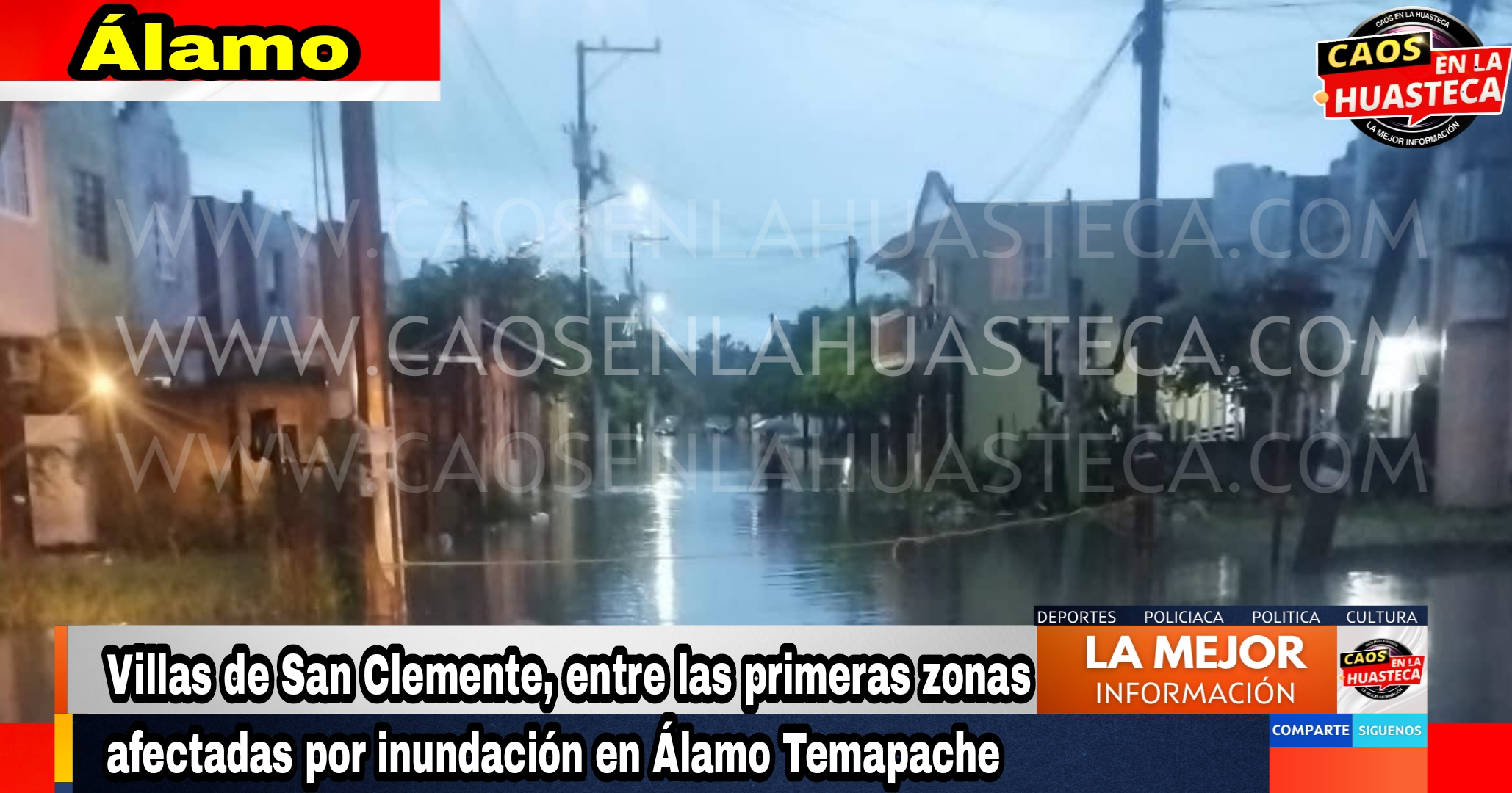 Álamo, Ver.– Las intensas lluvias registradas durante las últimas horas provocaron inundaciones en la colonia Villas de San Clemente, una de las primeras zonas afectadas del municipio, informó la Dirección de Protección Civil, en coordinación con Tránsito Municipal.